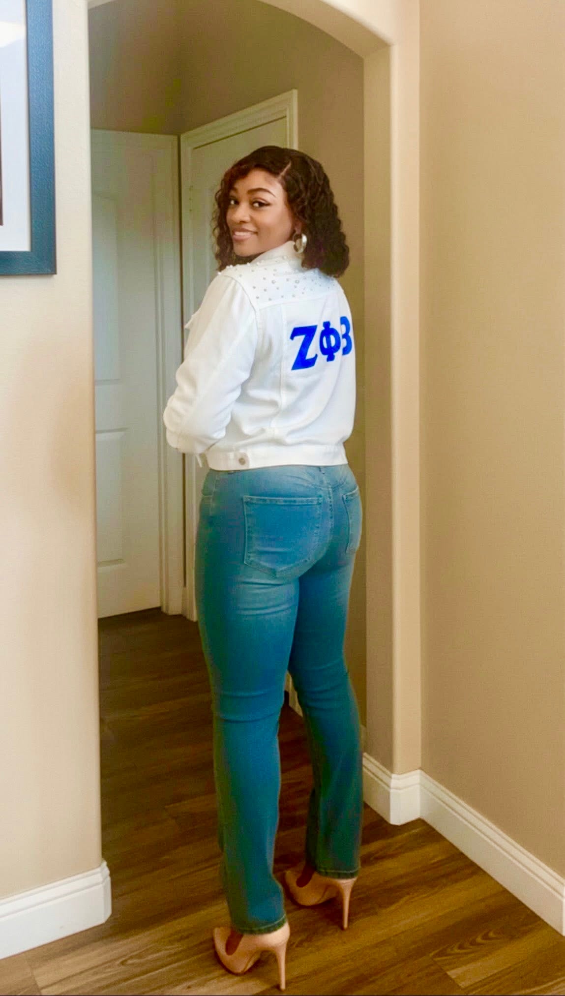 Show your PHInest side in the PHIner in Pearls Denim Jacket – White Luxe Edition. This fresh, crisp design was made for women who embody the elegance and excellence of Zeta Phi Beta Sorority, Inc. The brilliant white denim highlights the royal blue ZΦB lettering, while the pearl-embellished shoulders add a soft, feminine sparkle. Equal parts classy and bold — just like a true Finer Woman.