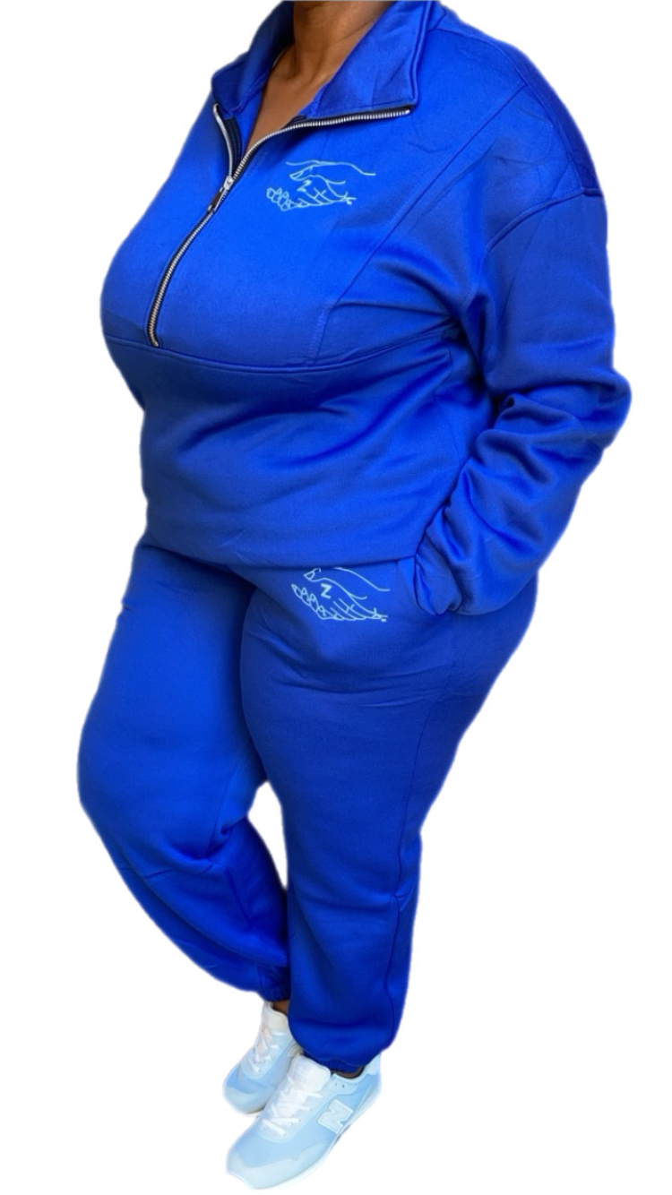 The Bonded Blu Sweatsuit from our Amicae Collection embodies the unity, grace, and everlasting bond shared between the Amicae and Zeta Phi Beta Sorority, Incorporated. Designed for women who wear their friendship with pride, this set blends comfort, confidence, and connection in every detail.